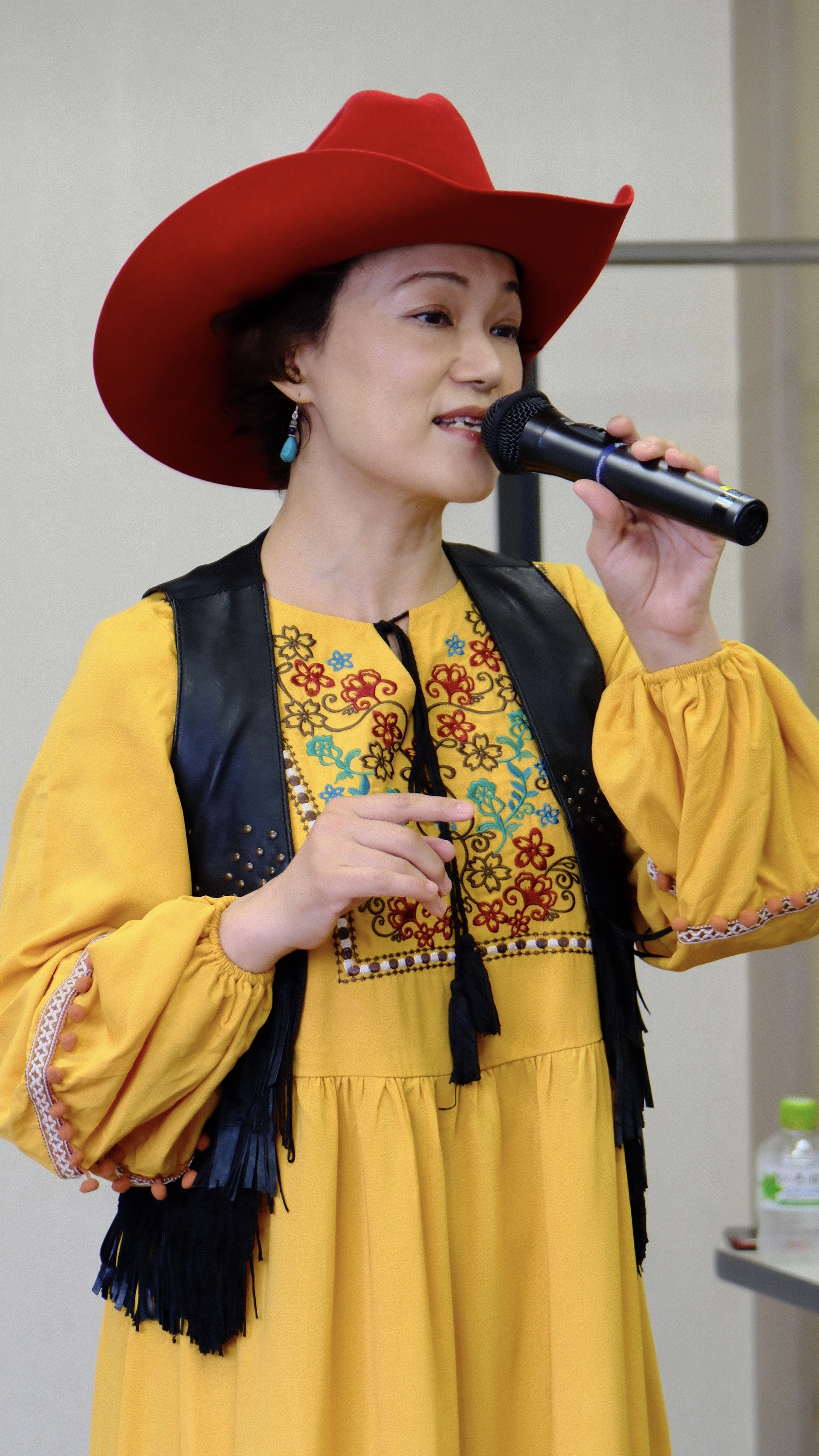 お話の合間にはギタリスト渡邊健太さんアコギの伴奏にて、カントリーの曲目を石田美也さんが英語と日本語で心に響く歌声をご披露、皆さんから大きな拍手です。