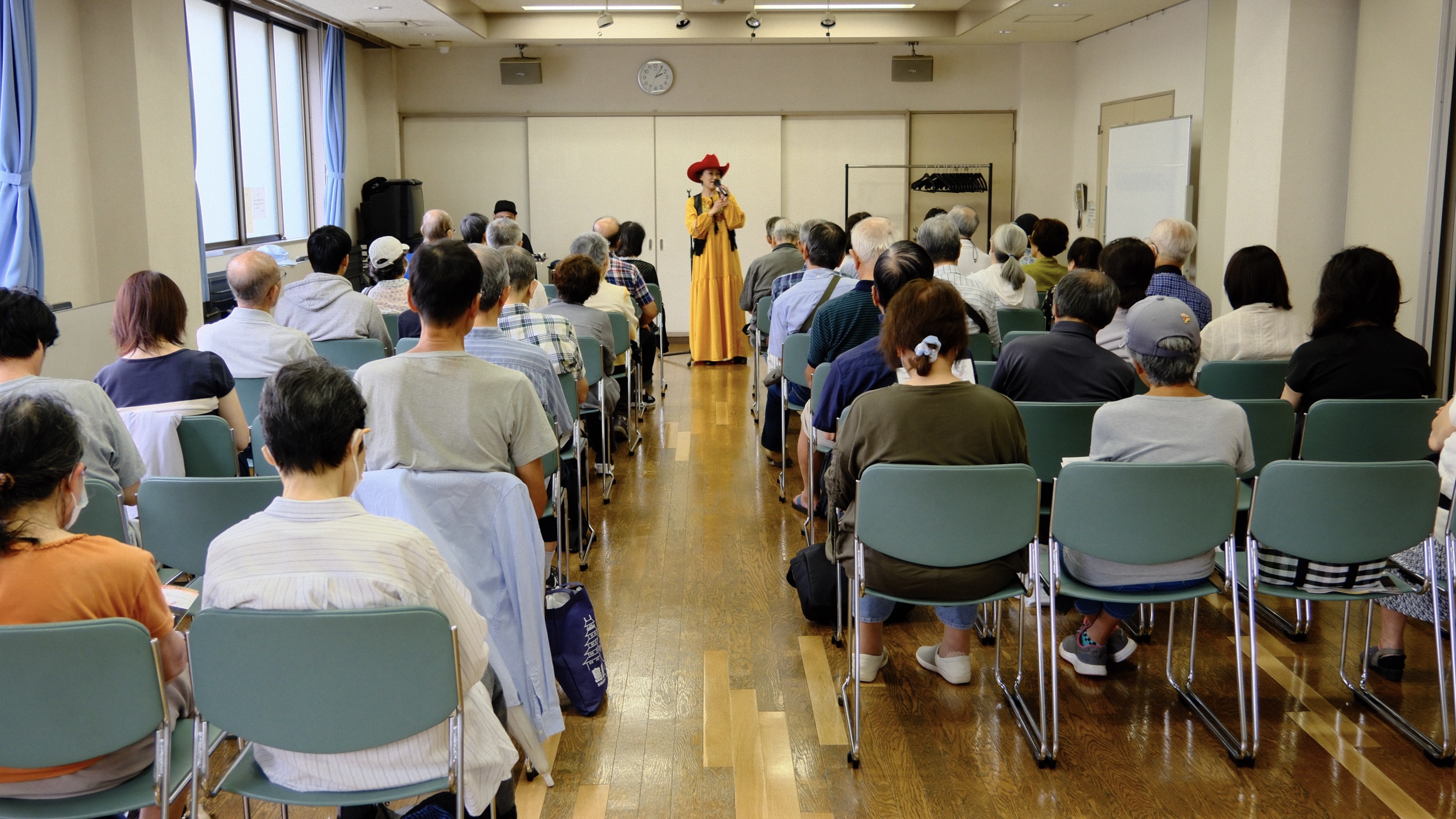 八成区民集会所にて石田美也さん(シティライツ・ボーカル)を講師にお迎えし、カントリーミュージックの講座が催されました。米国への移民の話から、カントリーミュージックの歴史・背景、代表的な曲目や歌手、また衣装や当音楽が絡んだ映画の紹介等多方面からのお話となり、 知識を広げることができました。