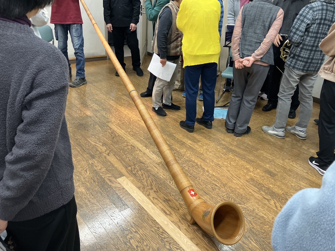 今回は特別に、全長3.8メートルのスイスの民族楽器・アルペンホルンを吹く体験も行われ、参加者からは「音が遠くから聞こえてくるようで不思議」「とても気持ちのいい音だった」との声がありました。