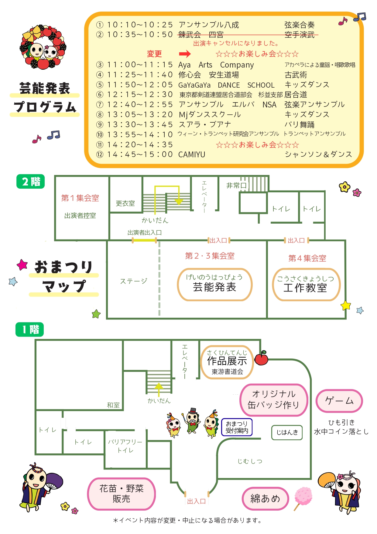 会場には朝から多くの方々にお越しいただき、芸能発表、作品展示、工作教室、花苗・野菜販売、ゲームコーナー、綿あめ、オリジナル缶バッジ作りなど、子どもから大人まで楽しめる多彩な催しで大にぎわいでした。