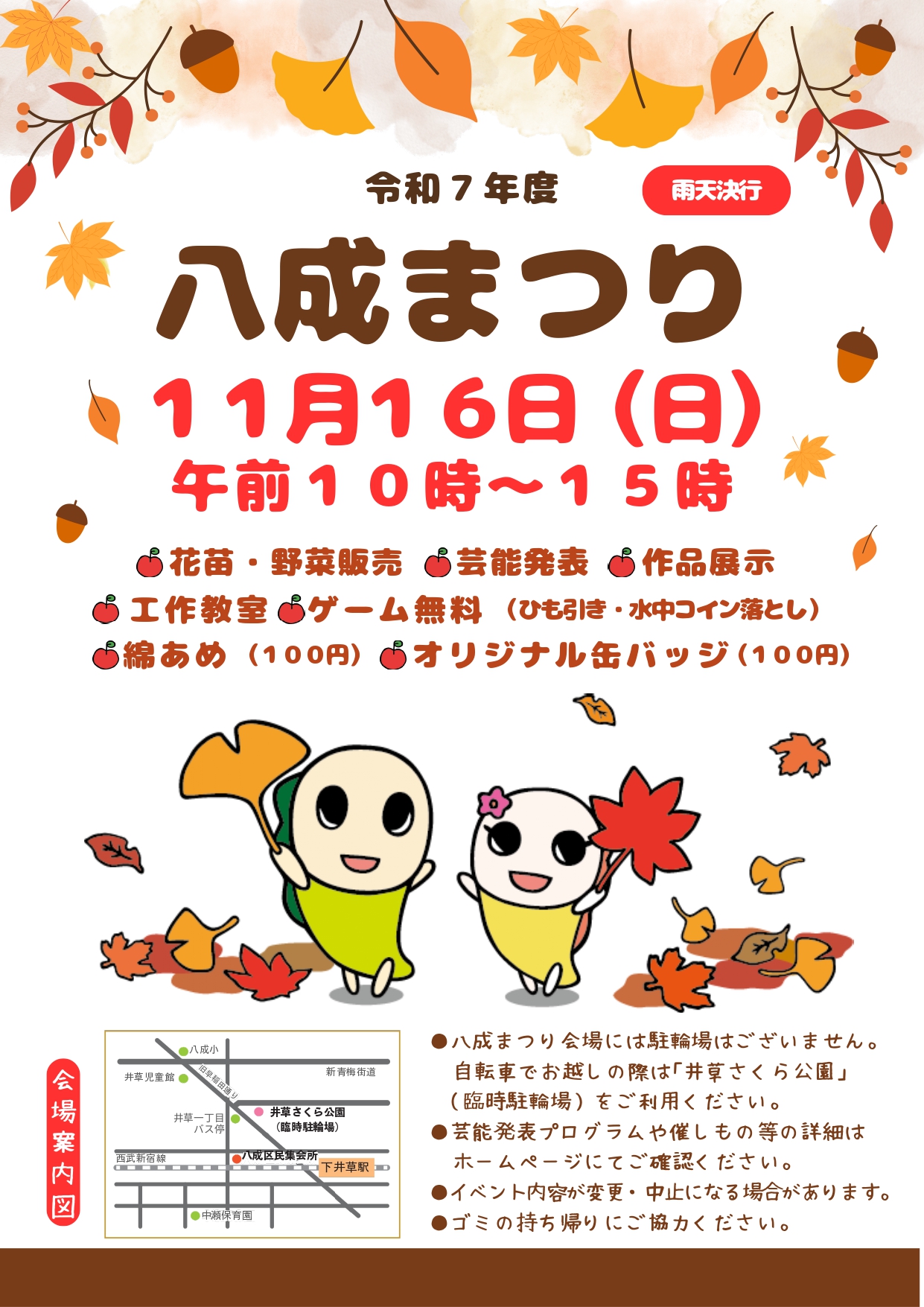 令和7年11月16日(日)🎉 令和7年度 八成まつり 開催! 🎉