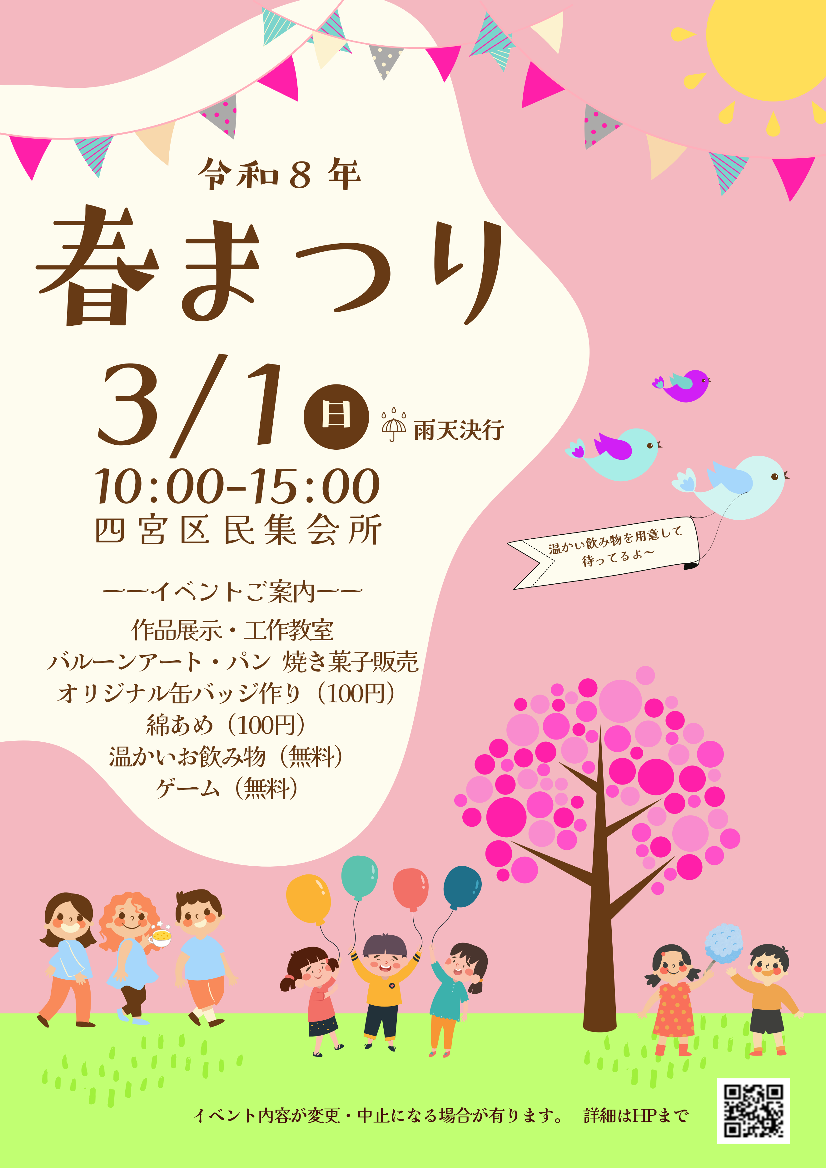 春の訪れを感じる一日。四宮区民集会所で春まつりを開催します。