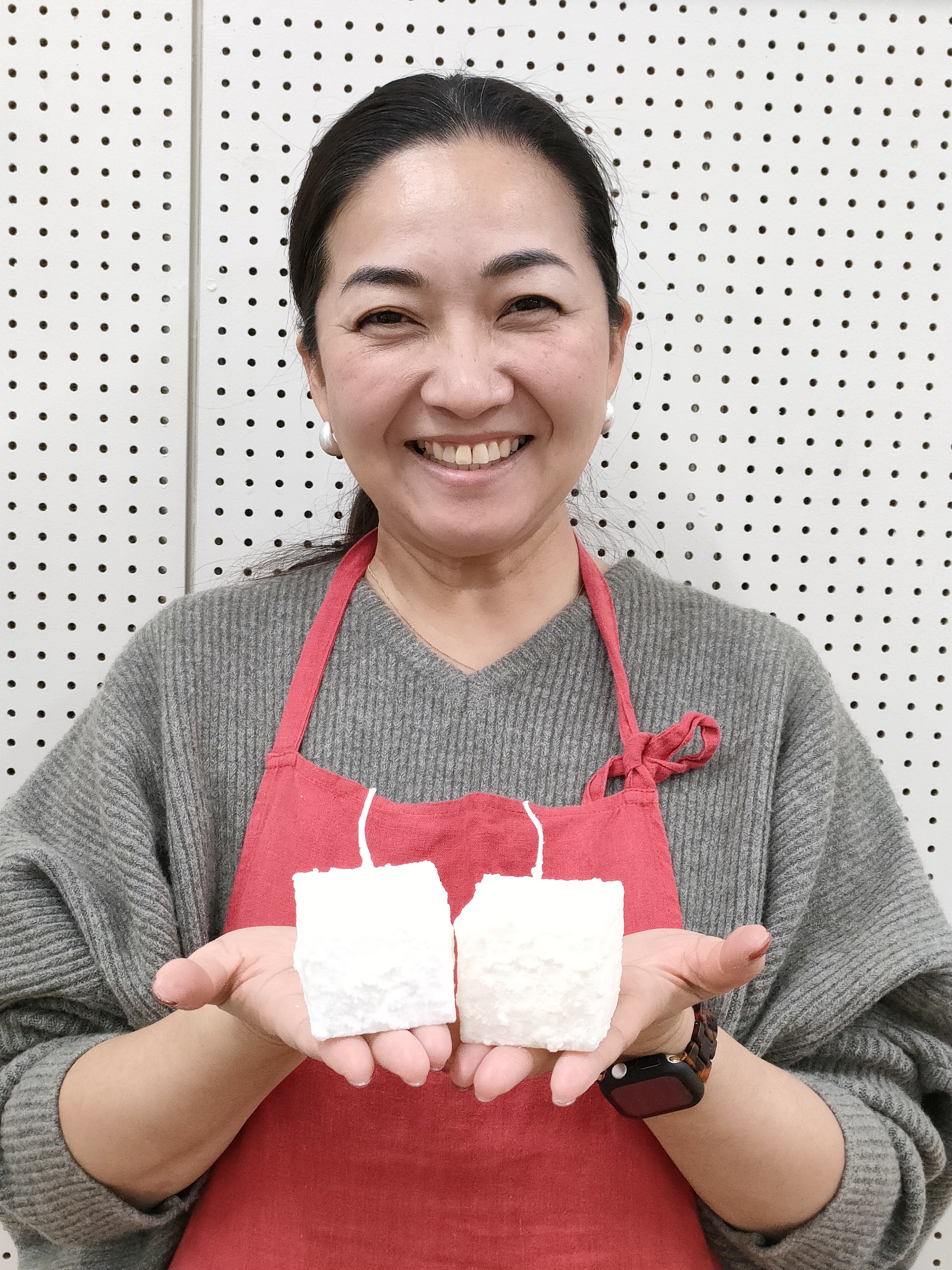 火を灯すと、キャンドルの中からもやさしい光が広がるように見え、心がほぐれるひとときを味わえる講座となりました。「前回も参加しました」と話すリピーターの姿も見られ、参加者からは「とても不思議」「まるで“かまくら”みたいですね」といった声が聞かれました。